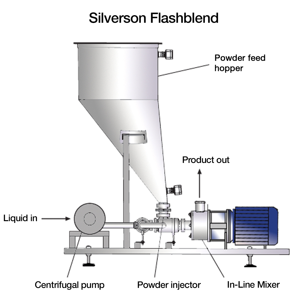 Flashblend 可依照每位客戶不同的需求,設計為連續式或半連續式的粉體/液體混合均質系統。也適用於超潔淨需求的應用,並可依客戶的需求進行客製化。另外也最適合處理假比重非常低的粉體,此類應用需要系統產生較大的真空,方可將粉體注入流體中